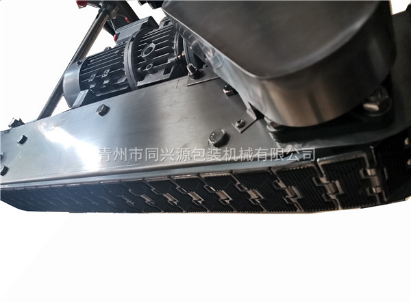 1、該機用不銹鋼鏈板作輸送帶,工作可靠。
